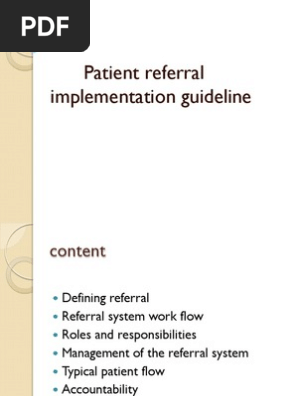 The role of the public private partnership january 2016 the journal of infectious diseases 213 s2. According to the analysis of the findings from data above a majority 133 67 2 of the respondents indicated there was no transport facilities for patient referral and the remaining 65 32 8 of the. Referral system guidelines department of health south africa 2003 close relations between all levels of the health system. Referral integral to phc.